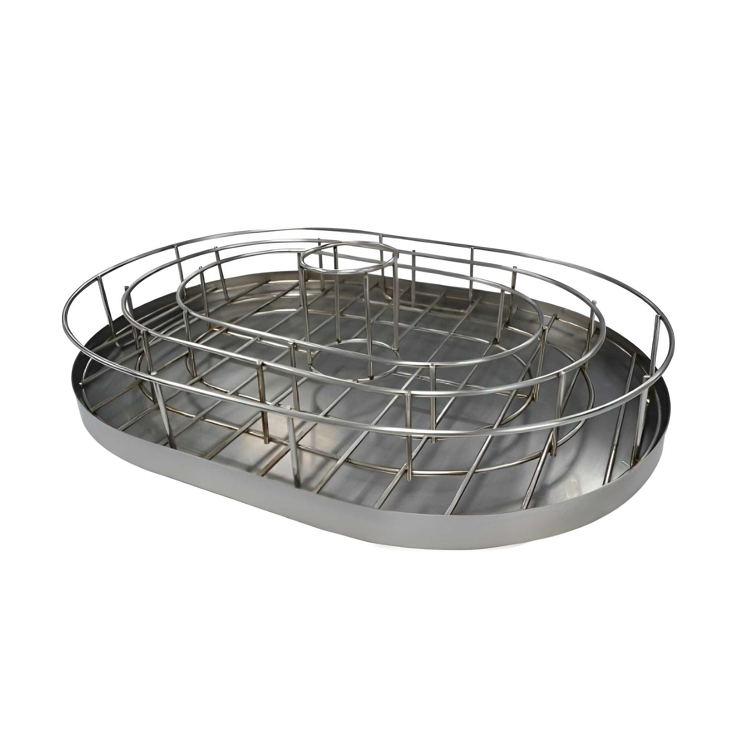 Ensure culinary perfection every time with the Primo Oval Rib and Chicken Rack! Tailored for the LG 300/XL 400 Kamado Grill, this rack accommodates up to five racks of ribs and an upright whole chicken concurrently. Moreover, its stainless steel drip pan captures and reintroduces cooking juices into the meat, enhancing flavor and moisture.