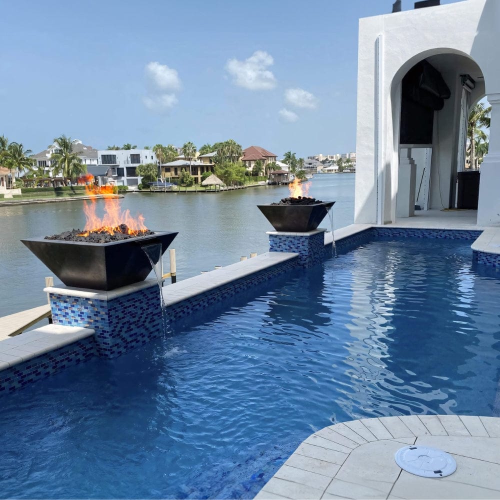 Elevate Your Poolside Ambiance with Our Square Fire and Water Bowl