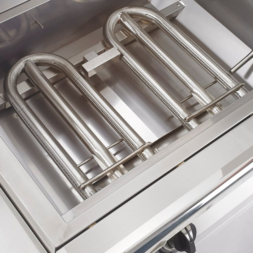 Optional Accessories: Infrared Sear Burner, Rotisserie Set, Wood/Chip Steam Tray, Grill Cart, Pedestal Mount, Lift Assist Handle, Cadde, Emergency Stop & Gas Timer, Cover, and Quick Disconnect Hose