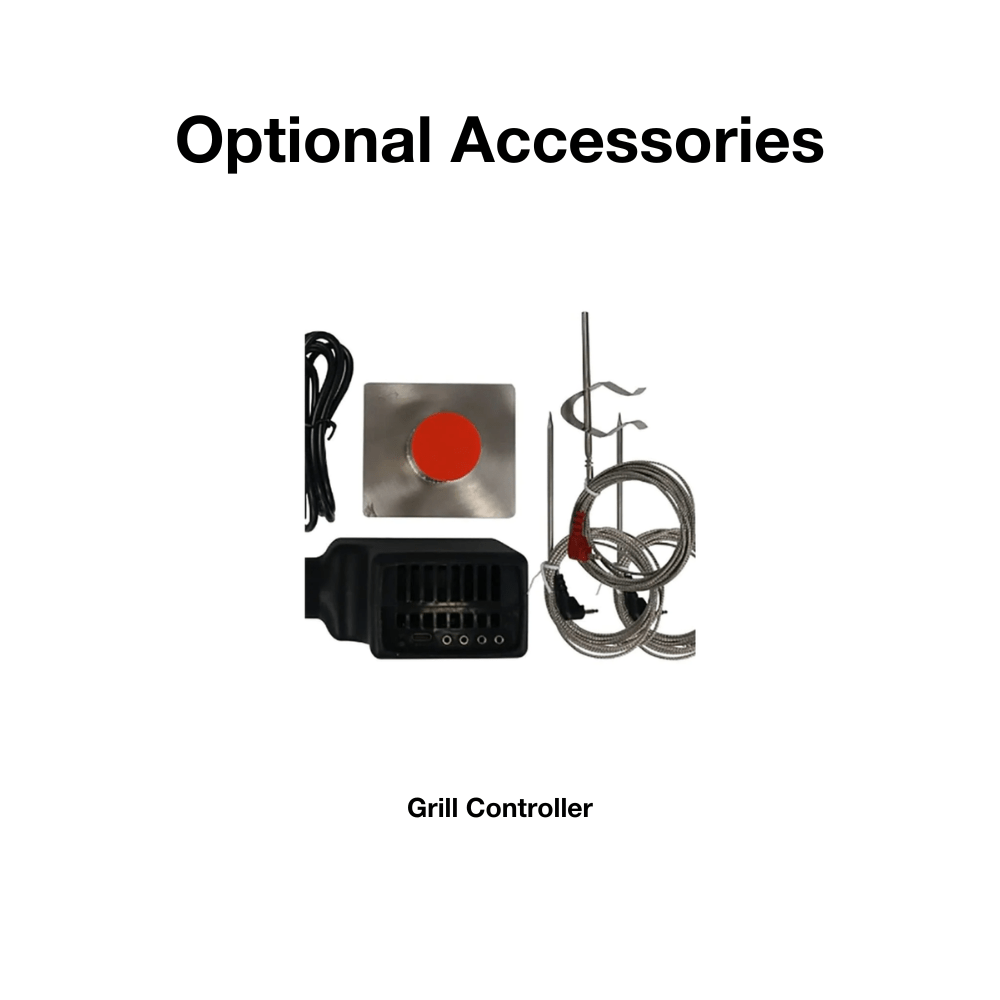 Optional Accessories: Grill Table, Cart, Rotisserie Kit and Accessories, Half-drip Pans, Grill Cover, Dividers, Griddles, Grates, Extension Racks, Drip Pan Racks, Deflectors, Pizza Oven, Baking Stones, Round Fredstone, Oval Fredstone, Cart Base, and Controllers.