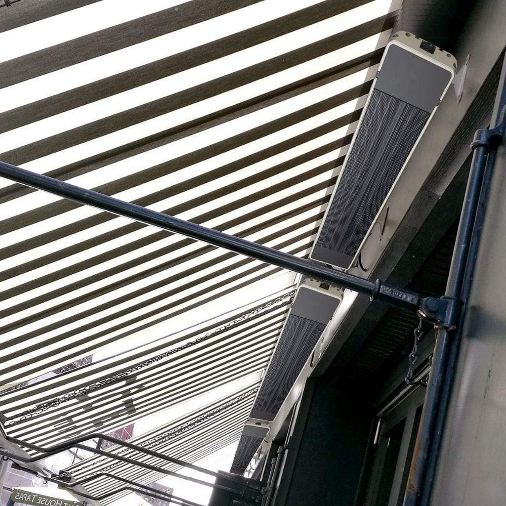 In exposed areas with air movement/wind, the far-infrared spread may reduce by 1/3. In such areas, or when used in low air temperatures, we would recommend considering a heater from our medium wave Genesis Series or proportionally increasing the number of X Series heaters and mounting at the lowest height.