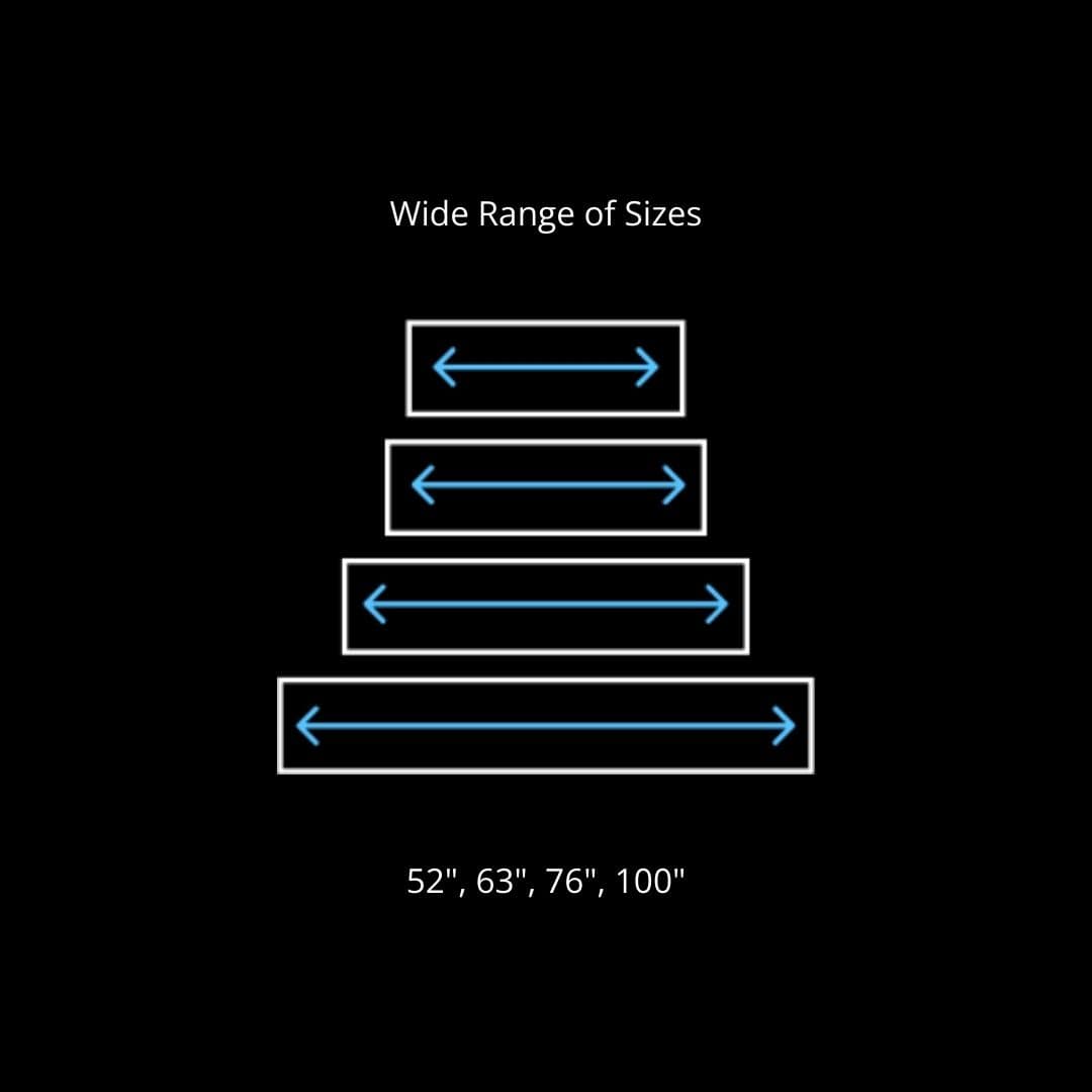 - 100" Model: 20 1/4" H x 100" W x 6 1/2" D