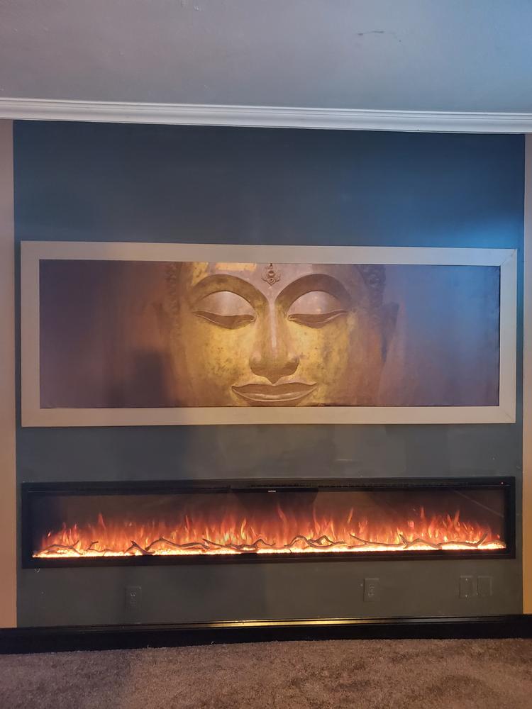 We replaced our old wood burning fireplace with this fancy electric one. So glad we did!! I can watch it all day! Cameras cannot even capture the awesomeness of the colors and they fade so perfectly you think your eyes are playing tricks on you. We used the extra space that the massive wood burning fireplace was taking up to triple the size of our pantry! Win win!! This electric fireplace fit perfectly between the walls. The heater will warm 1/2 our house in minutes. I plan to buy another for the master bedroom soon.