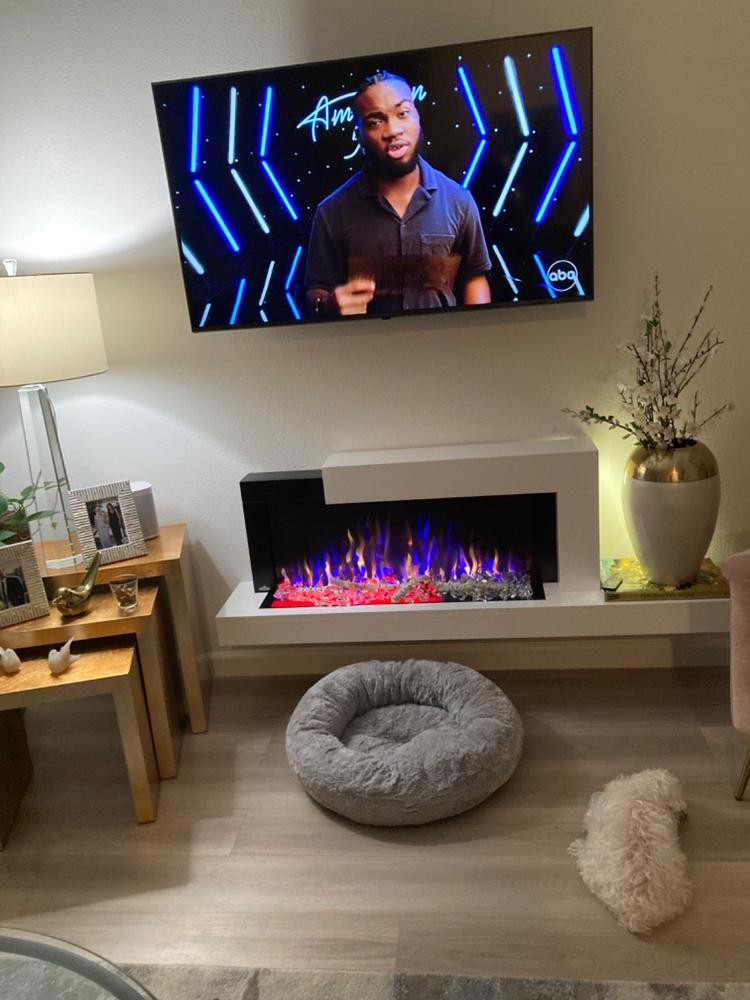 I looked for a while to find a slim electric fireplace and this one is worth the price. It is easy to install and has a bunch of different color configurations. It is a focal point of our living space and we love it! We are planning to get another one when we re-do our bedroom.