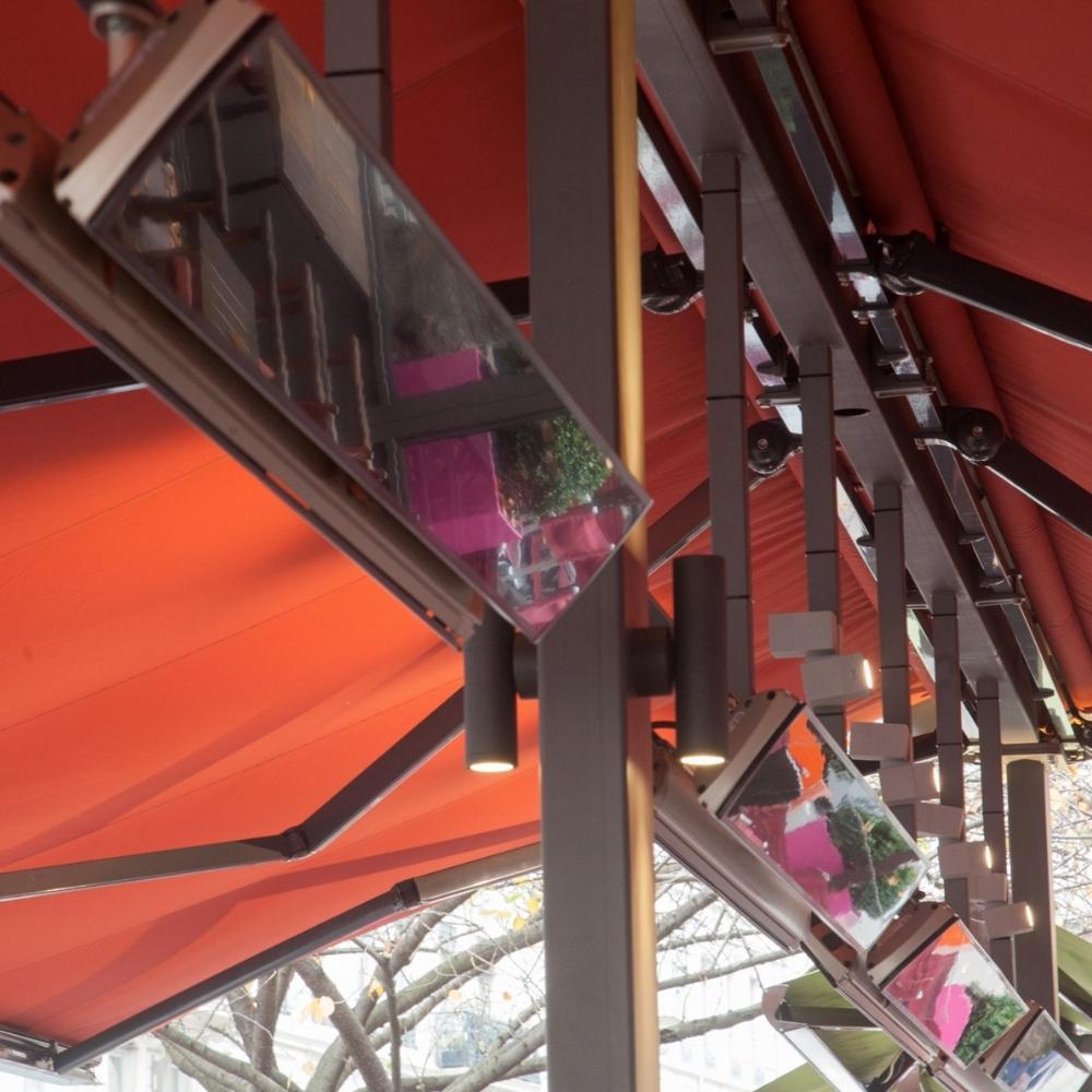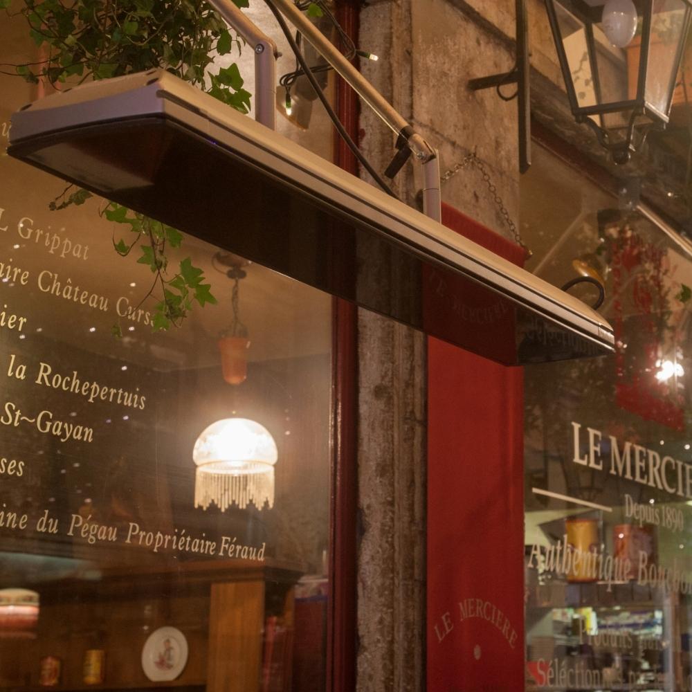 This patio heater is made of aluminum with a glass-ceramic face. IP 24, this heater can be installed indoors or in protected outdoor areas. It is splash resistant, making it ideal for covered patios or nearby pool areas. For open outdoor settings, the optional weather shield is required.
