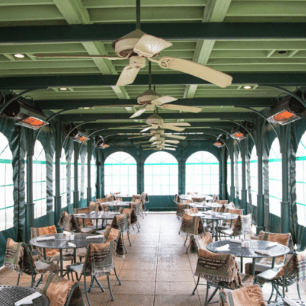 - Wall/Ceiling Mounted Patio Heater occupies zero floor space