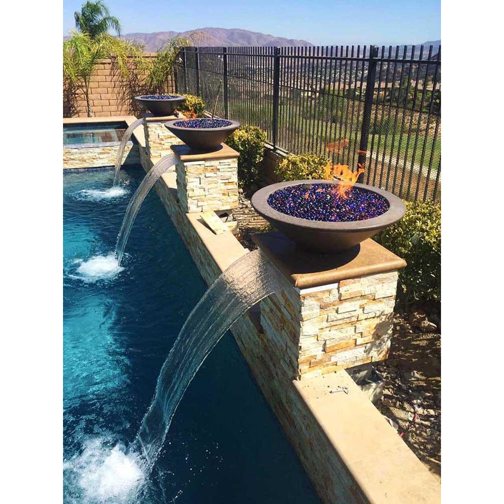 The Top Fires Cazo Fire Bowl has a curved body molded from Glass Fiber Reinforced Concrete (GFRC), a more durable type of concrete. Lining up several fire bowls will provide amazing lighting for your outdoor space. With a smooth finish that comes in 9 solid colors, 4 rustic finishes, and 5 metallic finishes, it will grace any space with style and elegance. Adorn it with optional fire glass, lava rocks, or ornaments to add to its beauty.