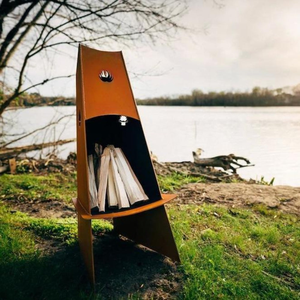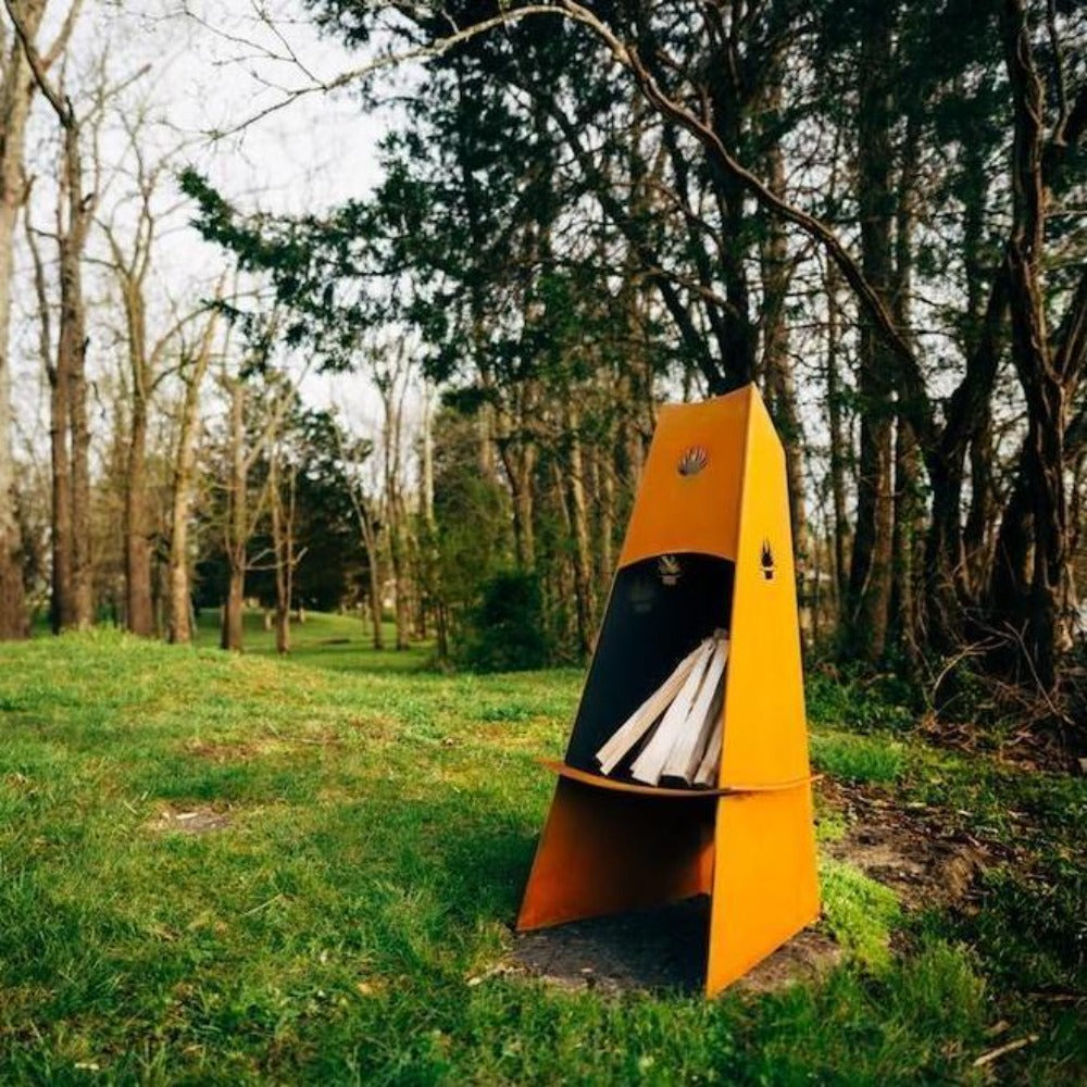 Look no further than the Fire Pit Art Vesuvius 48" Tall Steel Fire Pit. With its vertical design and unique trilateral shape, it's a stunning addition to any outdoor space, no matter how small. This wood-burning fire pit is made with Heavy Duty Mild Carbon Steel with an Iron Oxide Finish, making it completely maintenance-free. Its rain drain also prevents water from accumulating, so you can leave it outdoors, rain or shine.