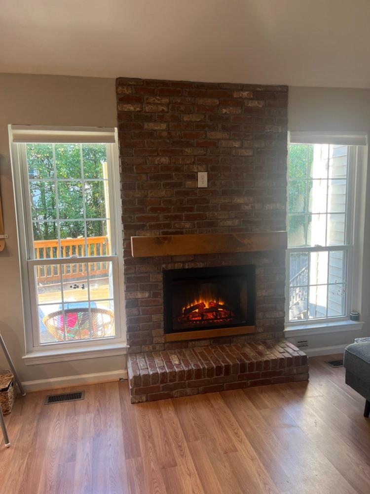 We actually have a wood burning fireplace, but wanted an electric one in another room. We built our own surround and used a stone veneer to finish it off. I have to say I was a little worried how realistic this would look and wow were we surprised. It looks great and VERY realistic. We couldn’t be happier!! Heat is wonderful!! Well worth the money. Picture is before we added stone.