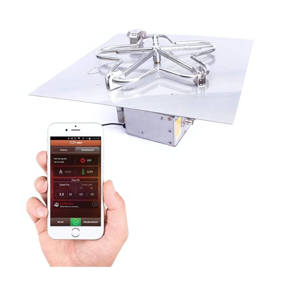 HPC Square Flat Gas Fire Pit Insert with Hi/Lo Electronic Ignition and Torpedo Burner