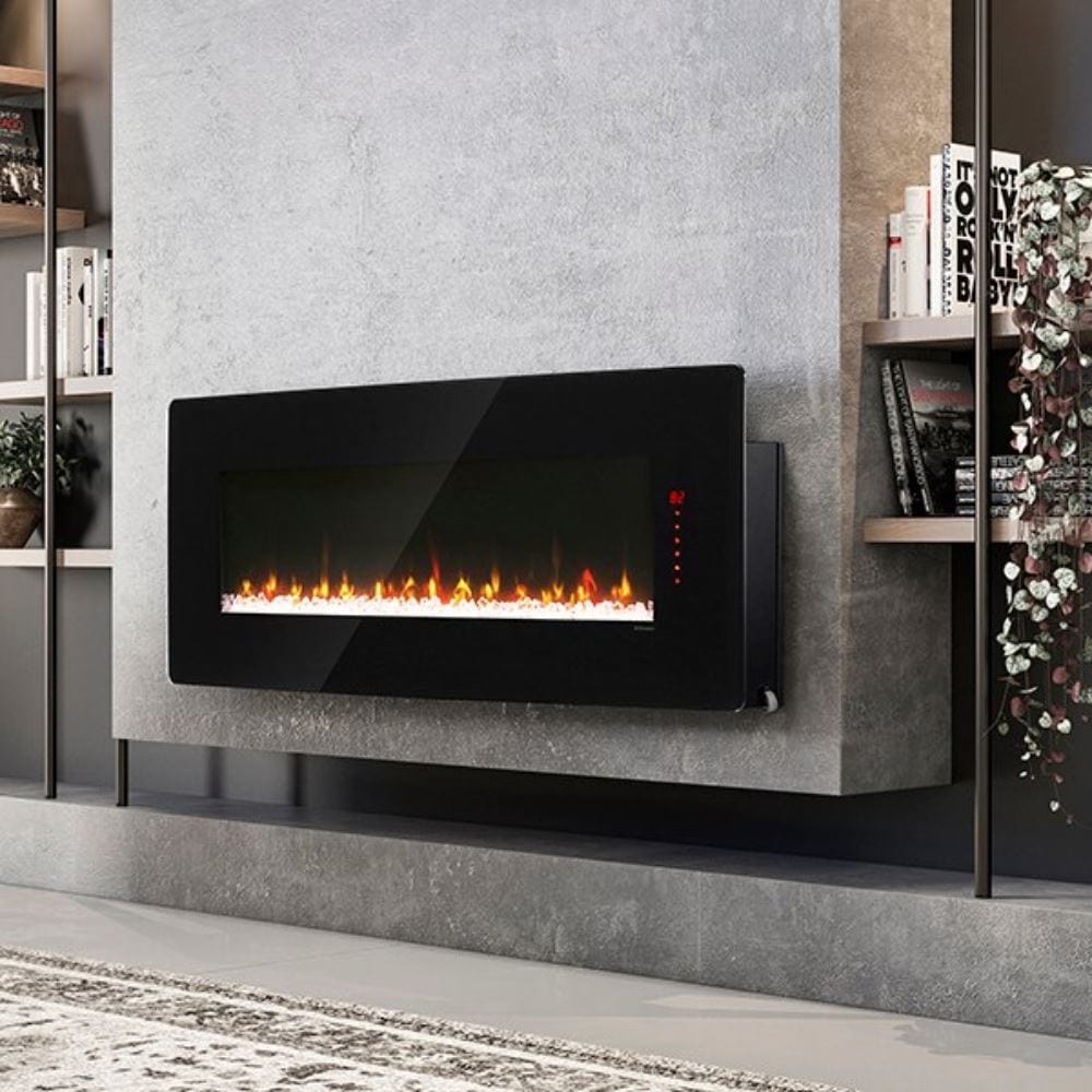 Featuring a curved glass surface that gives a clean and smooth look, it brings elegance to your home while highlighting the fireplace's realistic flames and media bed. Worry not as the glass stays cool even when under operation, making it safe for children and pets.