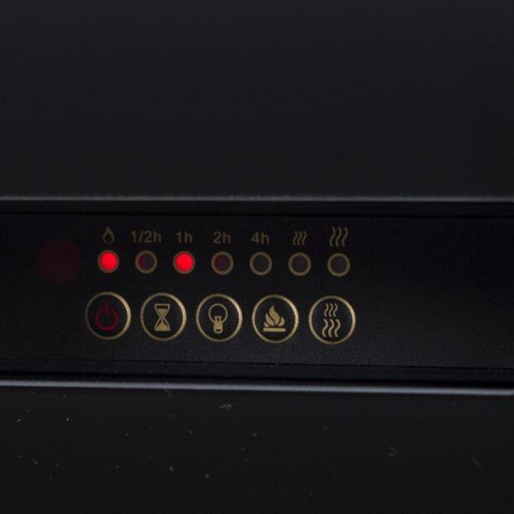 - Remote control for heat and flame setting (batteries not included) lets you change the heat settings or flame display with the click of a button.